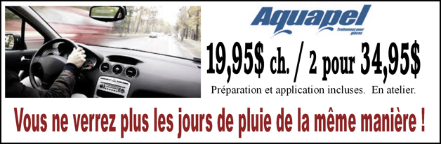 Visibilité accrue. Conduite plus sécuritaire. Aquapel est le produit éprouvé en matière d'entretien des glaces automobiles.